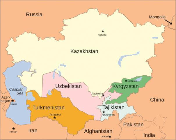 Bao gồm các nước: Kazakhstan, Kyrgyzstan, Tajikistan, Turkmenistan, Uzbekistan, Mông Cổ.