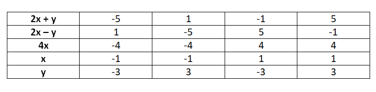 y | -3 | -9 | 5 | -1 |